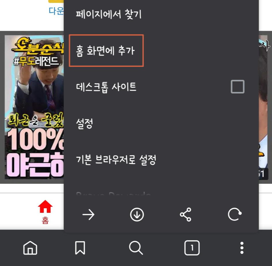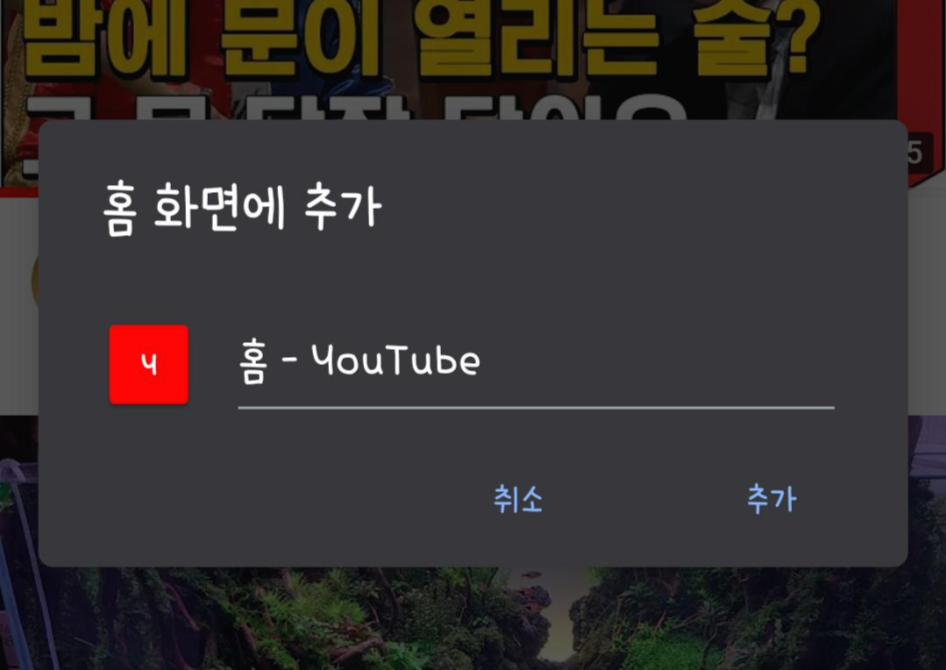 어플에서 유튜브 페이지를 홈화면에 추가하기를 사용하면 유튜브 어플처럼 사용 할 수도 있습니다.