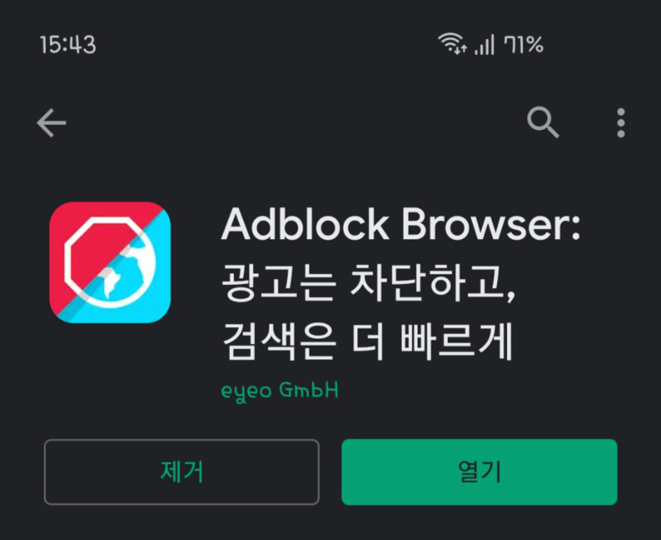 Brave 외에도 안드로이드에서는 Adblock이라는 어플도 있는데요, 전반적인 기능이나 속도는 비슷하기 때문에 본인이 사용해 본 후 자신에게 맞는 어플을 골라서 이용하시면 될 것 같습니다.