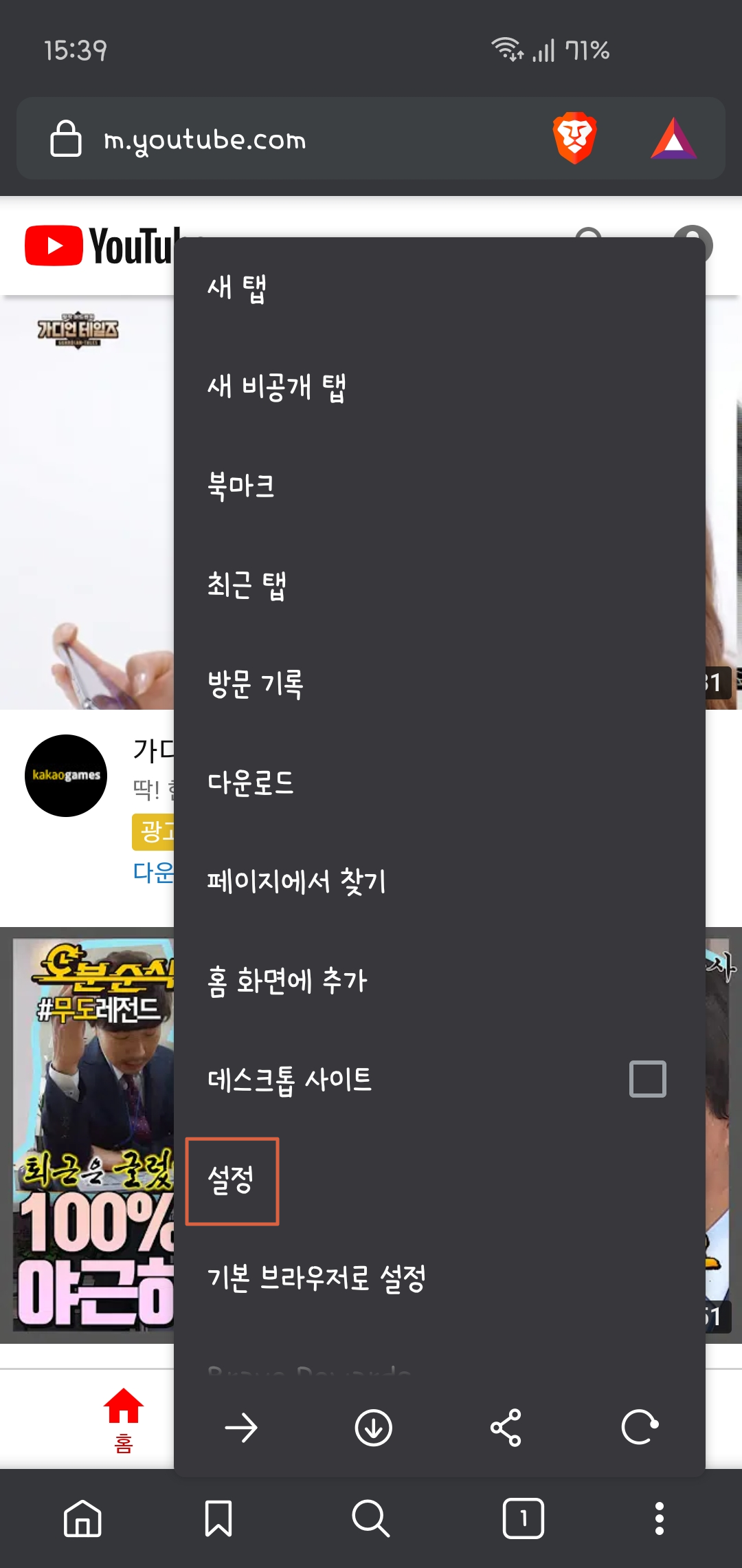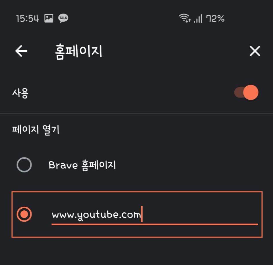 첫 화면을 유튜브로 설정하는 방법은 설정에서 홈페이지에 유튜브 주소를 추가해 준 뒤 www.youtube.com을 입력해주면 끝입니다.
