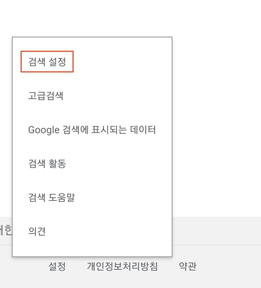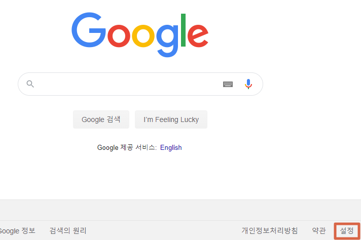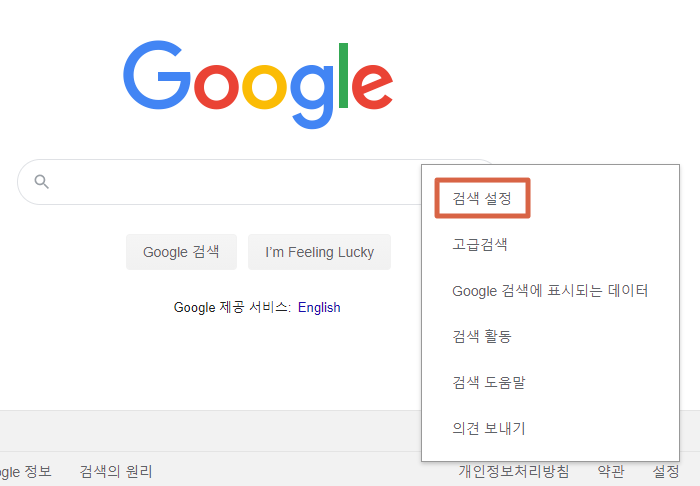 세이프서치를 해제하는 방법은 매우 간단한데요, 먼저 구글 메인페이지에서 우측하단에 있는 설정부분을 눌러 검색 설정탭으로 들어가 줍니다.