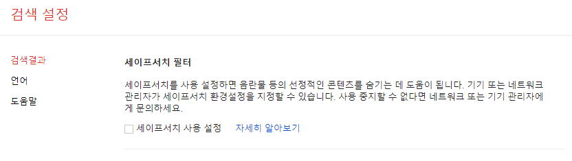 이렇게 간단하게 세이프서치 해제방법을 알아보았는데요, 공용으로 사용하는 컴퓨터이거나 아직 나이가 어린 자녀가 있는 가정집 같은 경우에는 세이프서치를 설정해놓는 것도 추천을 드립니다.