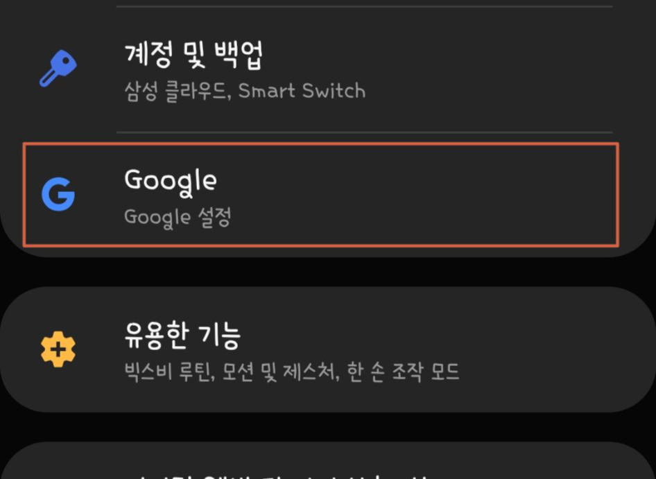 구글 어시스턴트를 끄는 방법은 굉장히 간단합니다. 먼저 스마트폰에서 설정으로 들어가주세요. 설정으로 들어가서 아래로 스크롤을 조금 내리다 보면 계정 및 백업 및에 Google이라는 칸이 있는데요, Google로 들어가주시면 됩니다.