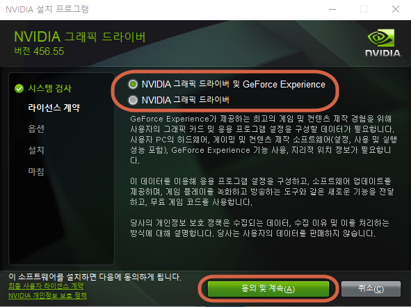 그러나 굳이 더 많은 설정이 필요 없으신 분은 그냥 엔비디아 그래픽 드라이버만 설치를 체크해주고 설치를 진행해주면 되는데요, 이렇게 해서 설치가 끝나면 엔비디아 그래픽 드라이버 설치 및 업데이트가 완료 된 것입니다.