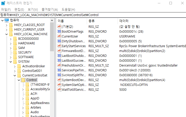 여기까지 확인을 다 했다면 이제 레지스트리 창을 닫고 컴퓨터를 재시작해주시면 해당 오류가 수정이 되었을 것입니다.