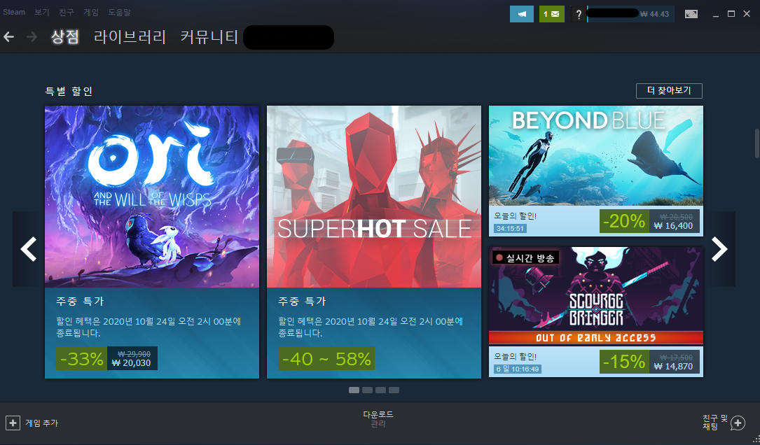 스팀에 있는 또 하나의 특징 중 하나라면 바로 세일인데요, 스팀은 세일을 굉장히 자주해서 연쇄할인마라는 별명이 있을정도라고 하니 어떤지 느낌이 오시죠?