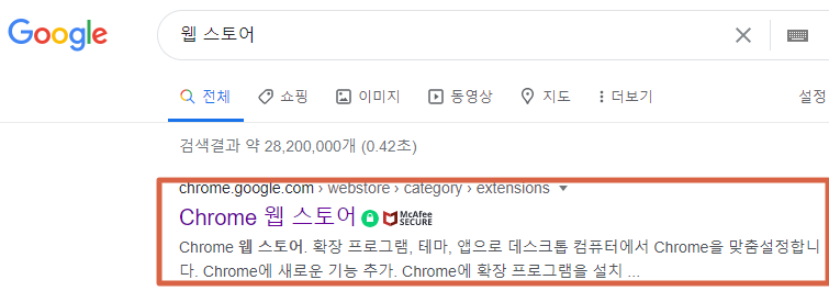먼저 크롬 브라우저에서 vpn 우회를 하는 방법입니다. 이 경우 크롬 브라우저에서 확장프로그램을 이용하는 방법인데요, 크롬 브라우저에서 웹 스토어에 접속해 줍니다.
