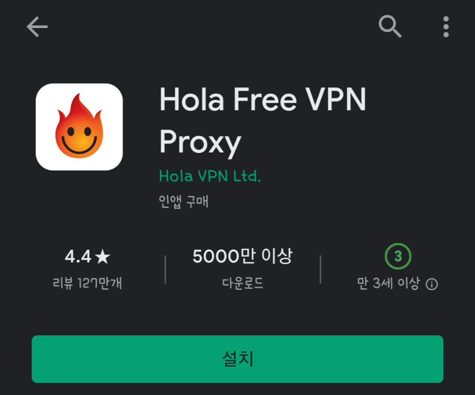 이번엔 스마트폰에서 할 수 있는 vpn 우회 방법입니다. 스마트폰에서는 어플을 통해서 vpn 우회를 할 수 있는데요, 크롬에서 추천드렸던 vpn 우회 프로그램과 같은 어플도 있는데요, 이 어플을 먼저 핸드폰에 설치해 줍니다.