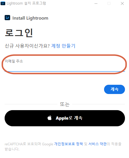 그러면 간단한 계정 정보를 기입하면 어도비에 가입을 할 수 있는데요, 메일 주소는 애플계정이나 구글계정을 사용해야 하니 참고해서 가입하시길 바랍니다.