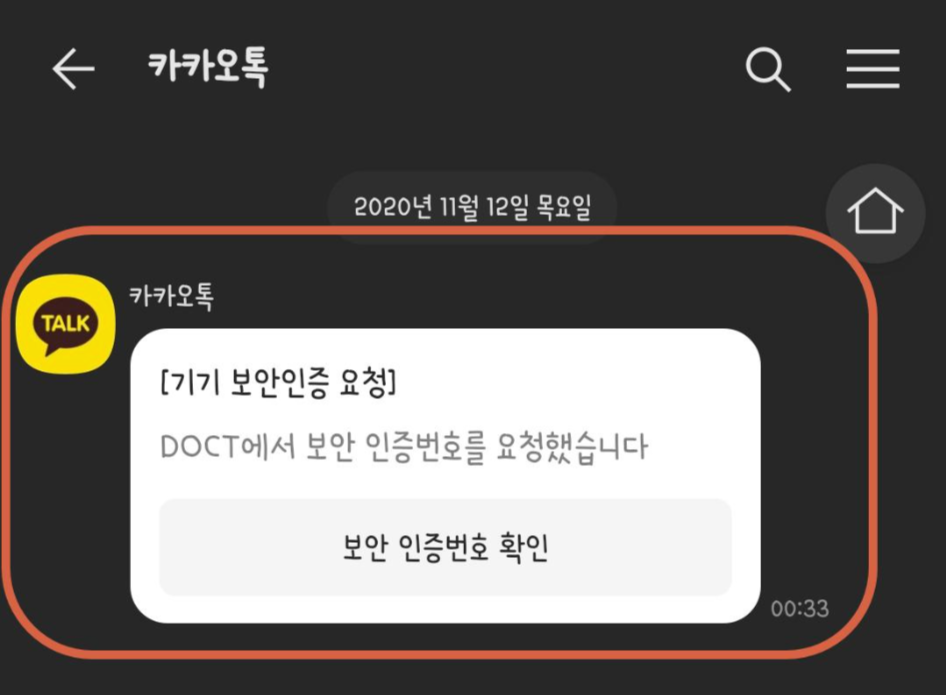 카카오톡 pc 버전에서 처음 로그인 할 때 보안코드가 필요하기 때문에 확인 후 코드를 입력해주면 본인 pc로 등록이 되고 모바일 버전에서 사용하는 것과 같은 확인 할 수 있습니다.