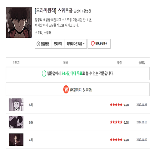 스위트홈 드라마는 제목과 달리 기괴하고 충격적인 이야기로 가득한 크리처 장르물이여서, CG로 구현한 괴물의 생생한 이미지에 원작 팬들은 반가움을 느낄 듯하지만 지나치게 만화에 충실해 스위트홈 드라마 자체로 즐기려는 시청자들에겐 다소 유치하게 느껴질 수 있을 것 같아요.